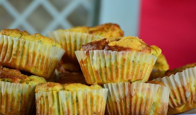 En un cuenco batimos el huevo, la leche, la levadura y la harina. Nos quedará una mezcla parecida a la de las tortitas americanas. En una sartén calentamos 1 cucharada de aceite y rehogamos el pollo hasta que se ponga blanco. Agregamos la cebolla y cocinamos 2 o 3 minutos. Luego agregamos el brócoli, la sal y la pimienta y cocinamos hasta que los brócoli estén algo tiernos. Dejamos enfriar 5 minutos y agregamos el queso rallado. En un molde de magdalenas aceitado ponemos dos cucharadas de la mezcla de huevo, llenamos hasta la mitad con la mezcla de pollo y brócoli, y ponemos por encima 1 o 2 cucharadas de mezcla de huevo. Llevamos al horno precalentado a 180°C por unos 30 minutos, hasta que al pincharlo con un palillo éste salga limpio. Dejamos enfriar unos 10 minutos y servimos.