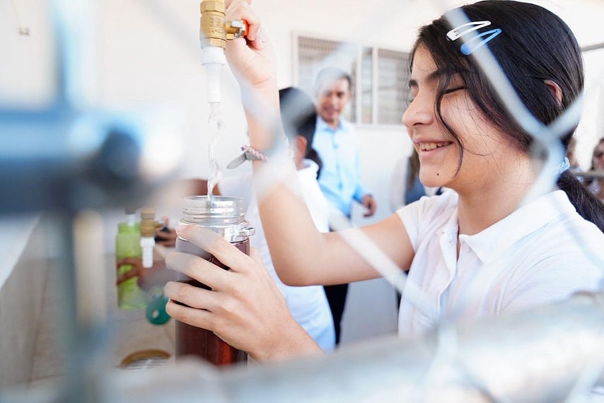 La planta, que funciona mediante un sistema de ósmosis inversa con capacidad de purificar hasta 800 litros de agua cada 24 horas, beneficiará directamente a más de mil alumnos de las escuelas primarias “Rafael Santacruz Reyes” y “Pedro Fructuoso Padilla Méndez”.