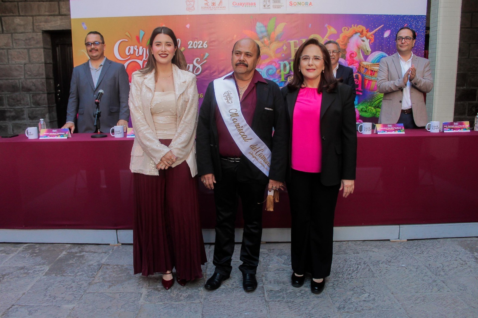 El organizador, el Ayuntamiento de Guaymas, encabezado por la doctora Karla Córdova, realizó el pasado viernes en el patio de Palacio Municipal, la presentación del programa del Carnaval 2026 “El pueblo está de fiesta”, que se realizará del 12 al 17 de febrero.