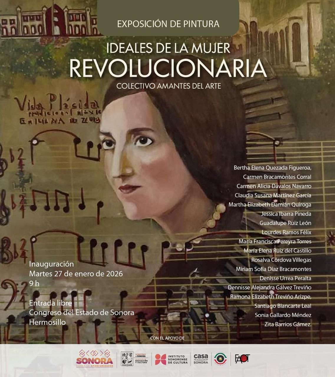 El Congreso del Estado extiende una cordial invitación a la ciudadanía para que asista a la exposición de pintura “Ideales de la mujer revolucionaria”, organizada por el colectivo Amantes del Arte, la cual se llevará a cabo este martes 27 de enero en las instalaciones del Poder Legislativo.
