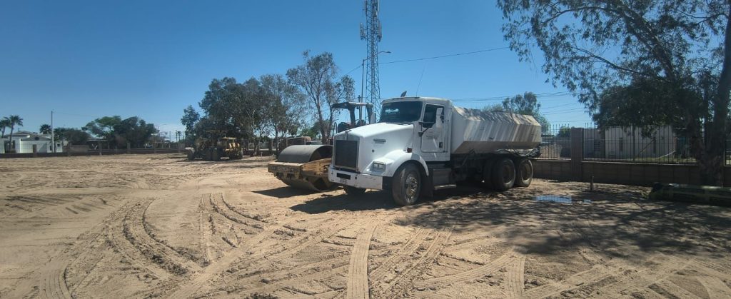 La obra, que se espera finalizar en mayo, incluye la instalación de pasto sintético, nuevas guarniciones y la adecuación de 6,500 metros cuadrados del terreno. Se realiza mediante una convocatoria del Ayuntamiento de San Luis Río Colorado, con recursos federales aportados por la Comisión Federal de Electricidad (CFE).